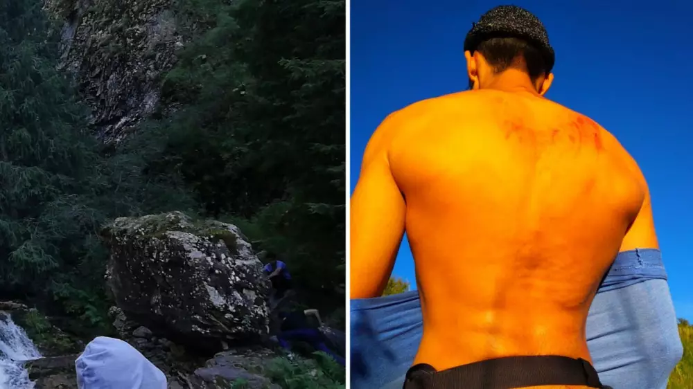 Я понимаю, что хруст был. Надо куда-то бежать. Я по диагонали от камня начинаю бежать. На скалах была тина, жижа скользкая. Я поскальзываюсь и, получается, падаю под камень. В этом месте была промоина, я попал в эту промоину, часть камня откололась, попала мне на спину. Из-за того, что там была вода, весь вес камня я не ощутил на себе, и, получается, поток воды вытолкнул меня. Я выбрался без сильных повреждений, только спину себе поцарапал и сломал зубы", - рассказал Роман Бачевский.
