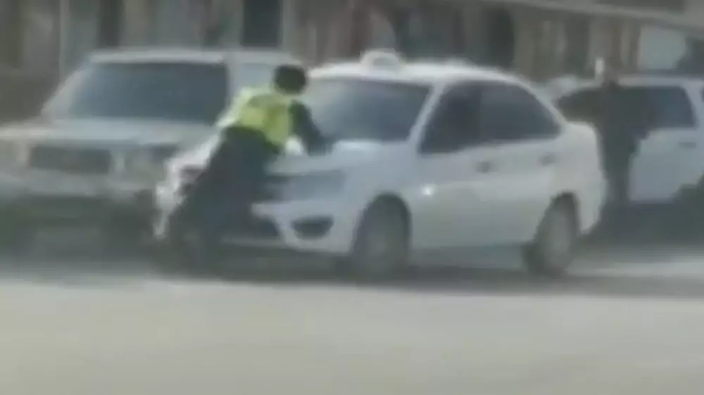 Житель Кызылорды, сопротивляясь сотруднику полиции, протащил его на капоте своего автомобиля, передает Tengrinews.kz со ссылкой на Polisia.kz.