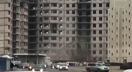 Скончался пострадавший при падении крана в Актау Кадр из видео