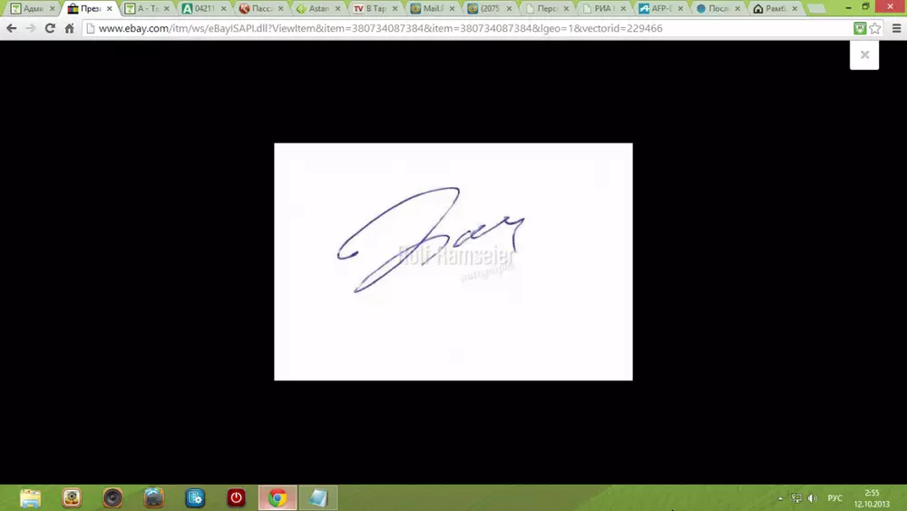 Автограф бывшего президента Кыргызстана Курманбека Бакиева выставлен на продажу на сайте интернет-аукциона ebay.com, сообщает CA-NEWS. Торги продлятся до 31 октября. В настоящее время за лот дают 225 долларов.