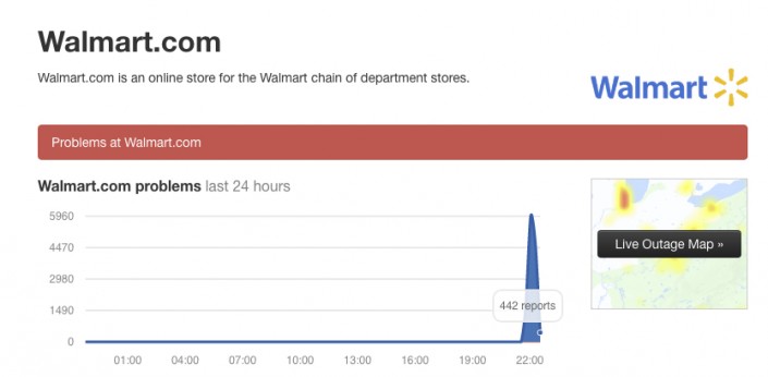 Еще более громкими были крушения в "Черную пятницу" в ноябре 2018 года.  Сайт Walmart упал всего через несколько секунд после старта продаж. Walmart - американская компания, управляющая крупнейшей в мире сетью оптовой и розничной торговли.