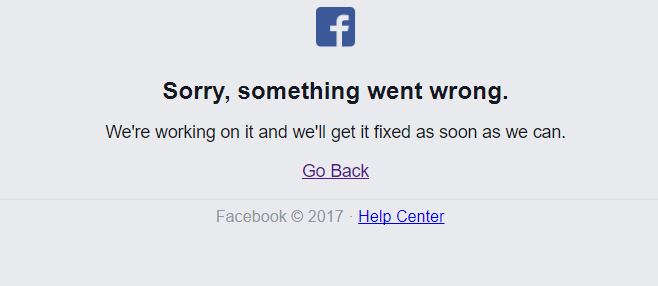 При попытке открыть какую-либо страницу в Facebook пользователю сообщается о проблеме и что специалисты решают ее.
