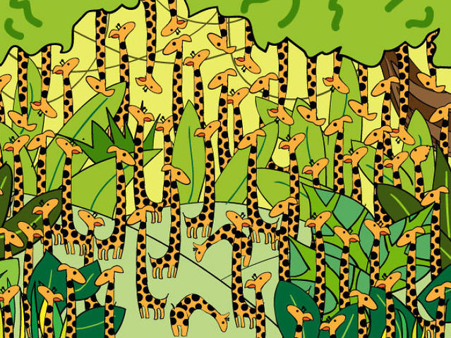 На второй картинке попробуйте отыскать змею, затерявшуюся среди жирафов.