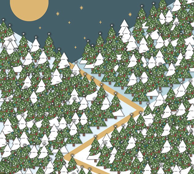 А на третьей спрятался эльф в густом зимнем лесу. Смотрите внимательнее.