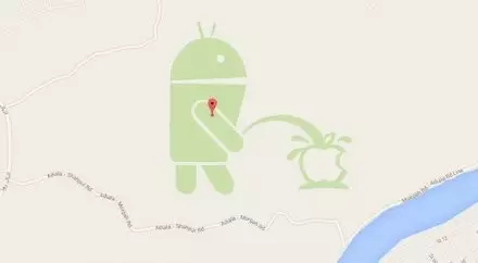 В апреле в районе реки Соан в Пакистане на картах Google появилась картинка, на которой робот - логотип Android - справляет нужду на надкушенное яблоко - логотип компании Apple. Картинка была создана в стиле известного изображения Кальвина из комиксов "Кальвин и Хоббс". Изображение убрали с карт, а представителям Google пришлось принести свои извинения. По их словам, рисунок сделал не разработчик приложения, а сторонний пользователь с помощью общедоступного приложения Map Maker.