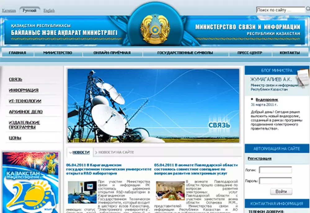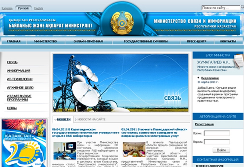 Министр связи и информации Казахстана обновил сайт ведомства и появился в Twitter, сообщает Tengrinews.kz.