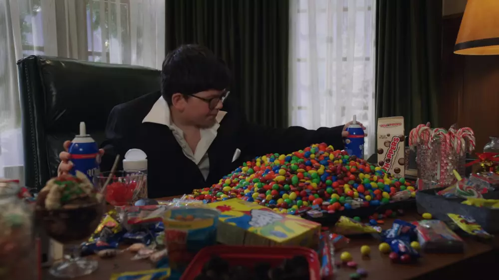 Один из пользователей отметил один кадр, где главный герой сидит перед горой сладостей. Этот момент напомнил пользователям Сети о фильме "Лицо со шрамом", когда стол героя Аль Пачино был завален наркотиками.