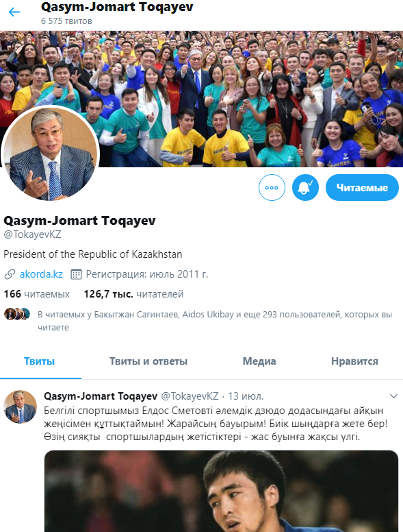 Айта кетсек, Twitter-ге тіркелген президенттер қатарында Қасым-Жомарт Тоқаев та бар. Оның парақшасына 130 мыңға жуық адам жазылған.