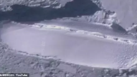 В начале видео пользователь под ником MrMBB333 показывает другой кусок льда, на котором, как он утверждает, видны следы стен, входа и парковки для транспорта.