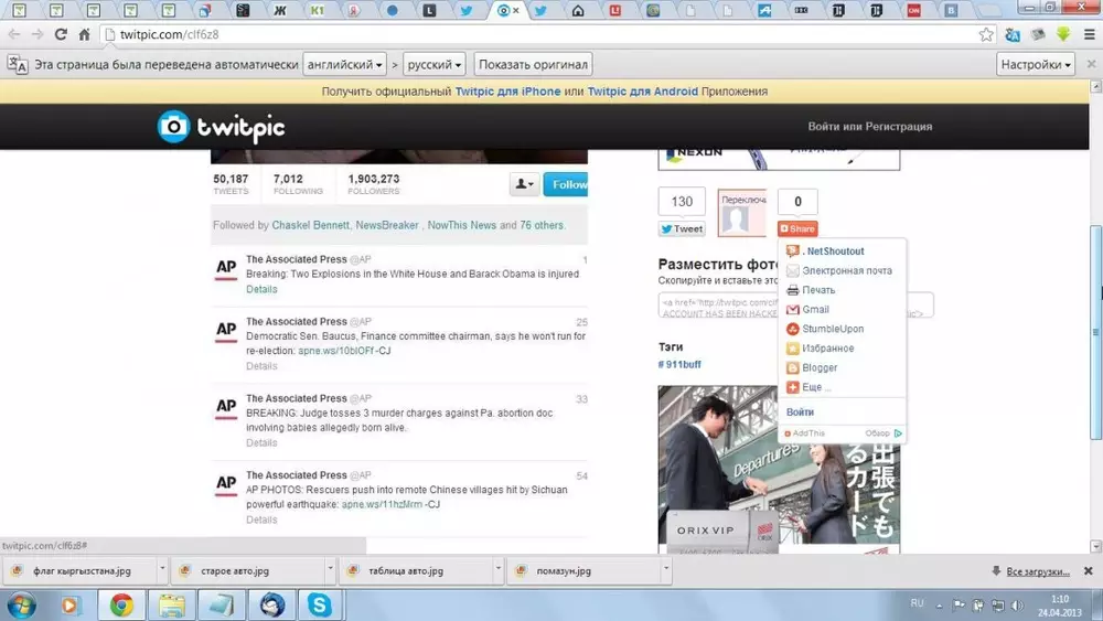 Позже другой микроблог Associated Press опроверг информацию об инциденте в Вашингтоне. Информагентство предупредило, что заблокирует все свои аккаунты до тех пор, пока не убедится в их безопасности.