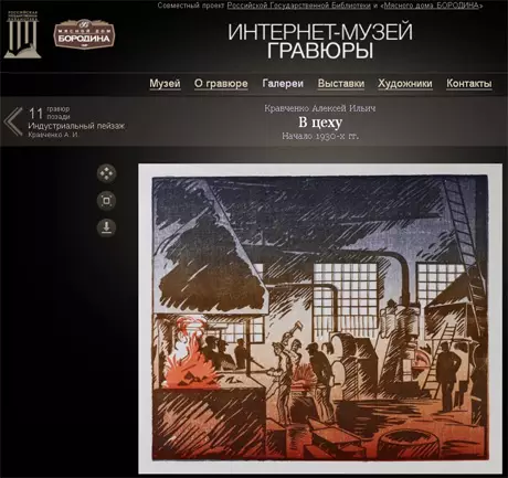 В России появился первый интернет-музей гравюры, сообщает Newsru.com. Презентация прошла в здании Российской государственной библиотеки (РГБ) России, которая совместно с компанией "Мясной дом Бородина" выступила в качестве организаторов мероприятия. Виртуальный Музей собрал лучшие произведения искусства из фондов РГБ и компании "Мясной дом Бородина". Экспозиция, в которую входят произведения Мстислава Добужинского, Алексея Кравченко, Николая Куприянова, Александра Бенуа и других мастеров, насчитывает около 200 работ. Они все относятся к русско-советской школе гравюры конца XIX - первой половины XX века, ставшей на рубеже столетий полноценным, самостоятельным видом искусства. Искусствовед Елена Елисеева называет виртуальную форму для экспозиции гравюр преимуществом, поскольку это позволяет выкладывать в интернете целую серию гравюр. Представитель главной библиотеки России Любовь Родионова пояснила, что через сайт можно показать даже те работы, которые раньше РГБ была вынуждена скрывать от широкой публики, чтобы сохранить их для будущего.