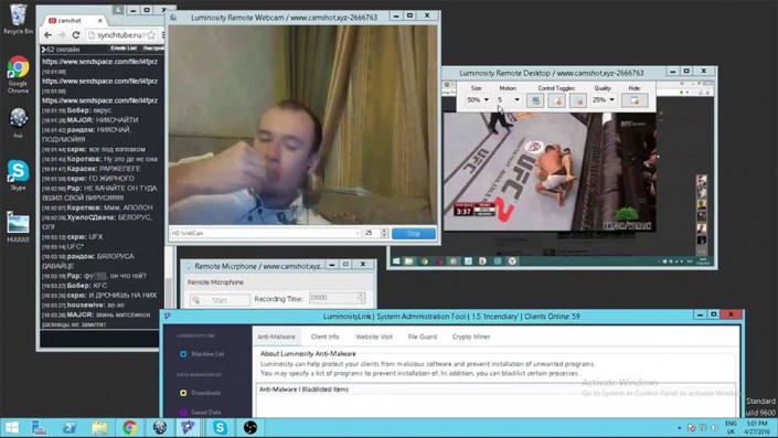 Анонимный хакер запустил интернет-шоу, которое состоит из трансляций со взломанных веб-камер случайных людей. Вот уже несколько дней злоумышленник занимается слежкой за пользователями с помощью легальной системы удаленного администрирования LuminosityLink и показывает все происходящее в Интернете. Трансляции он организует на специальном сервисе Synchtube, комбинирующем в себе видео с YouTube, чат и систему пожертвований.