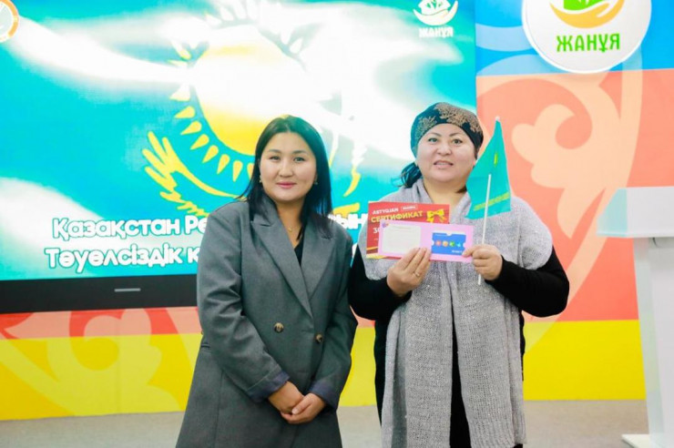 Подарочные сертификаты на покупку продуктов и одежды предоставило ТОО "Kaspi med". "В честь праздника Независимости нашей республики решили помочь нуждающимся людям подарками в виде сертификатов на продукты и одежду. Мы выделили сертификаты на 300 семей отдельно на продуктовую корзину и сертификат на приобретение вещей", - сказала главный бухгалтер компании Айгерим Тайжанова.