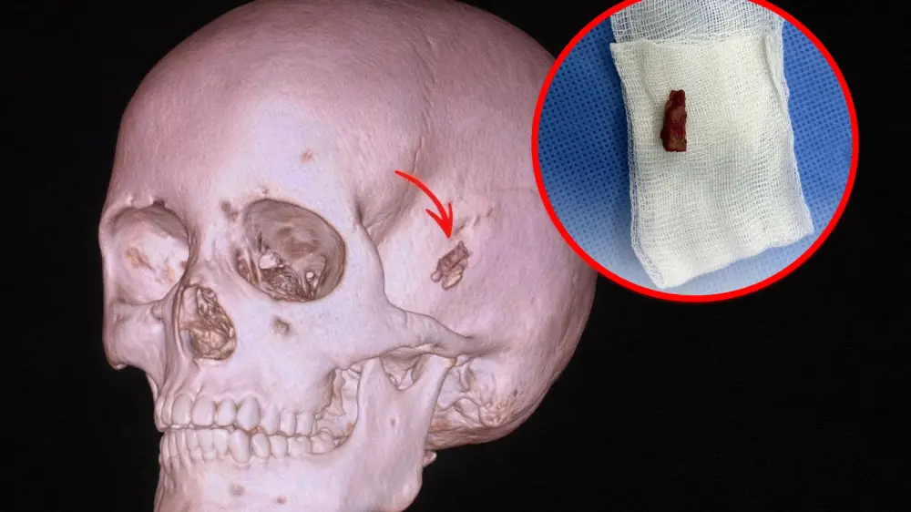 "При осмотре отмечался отёк левой височной области, а при пальпации в области скуловой кости — твёрдое, подвижное образование. Ребёнка обследовали, провели компьютерную томографию головного мозга и обнаружили инородное тело. Во время операции его успешно извлекли, им оказался кусочек ветки длиной около 1,5-2 сантиметра", – рассказали в областной детской больнице Павлодара.