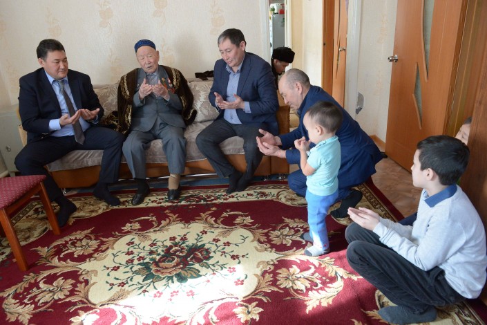 С пожеланиями здоровья аким области надел на аксакала чапан и подарил ему новый телевизор. В гостях у Габдуллы Бейсембаева Булат Бакауов пробыл целый час.