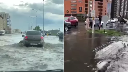 Некоторые улицы в Нур-Султане затопило после сильного дождя. Воду откачивают специальные машины, передает корреспондент Tengrinews.kz.