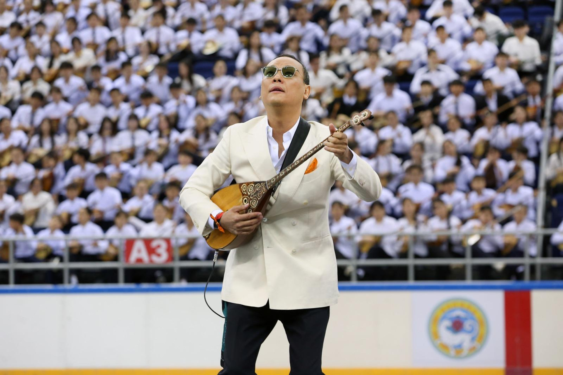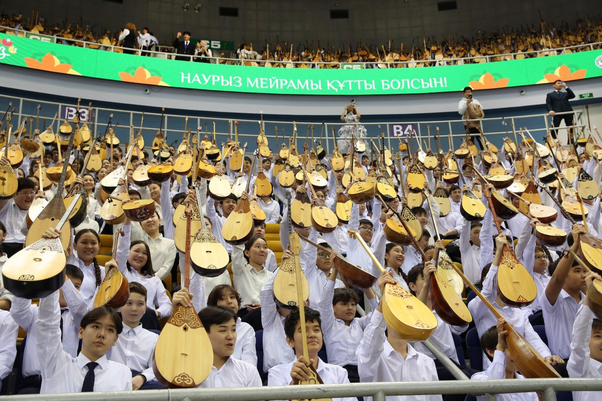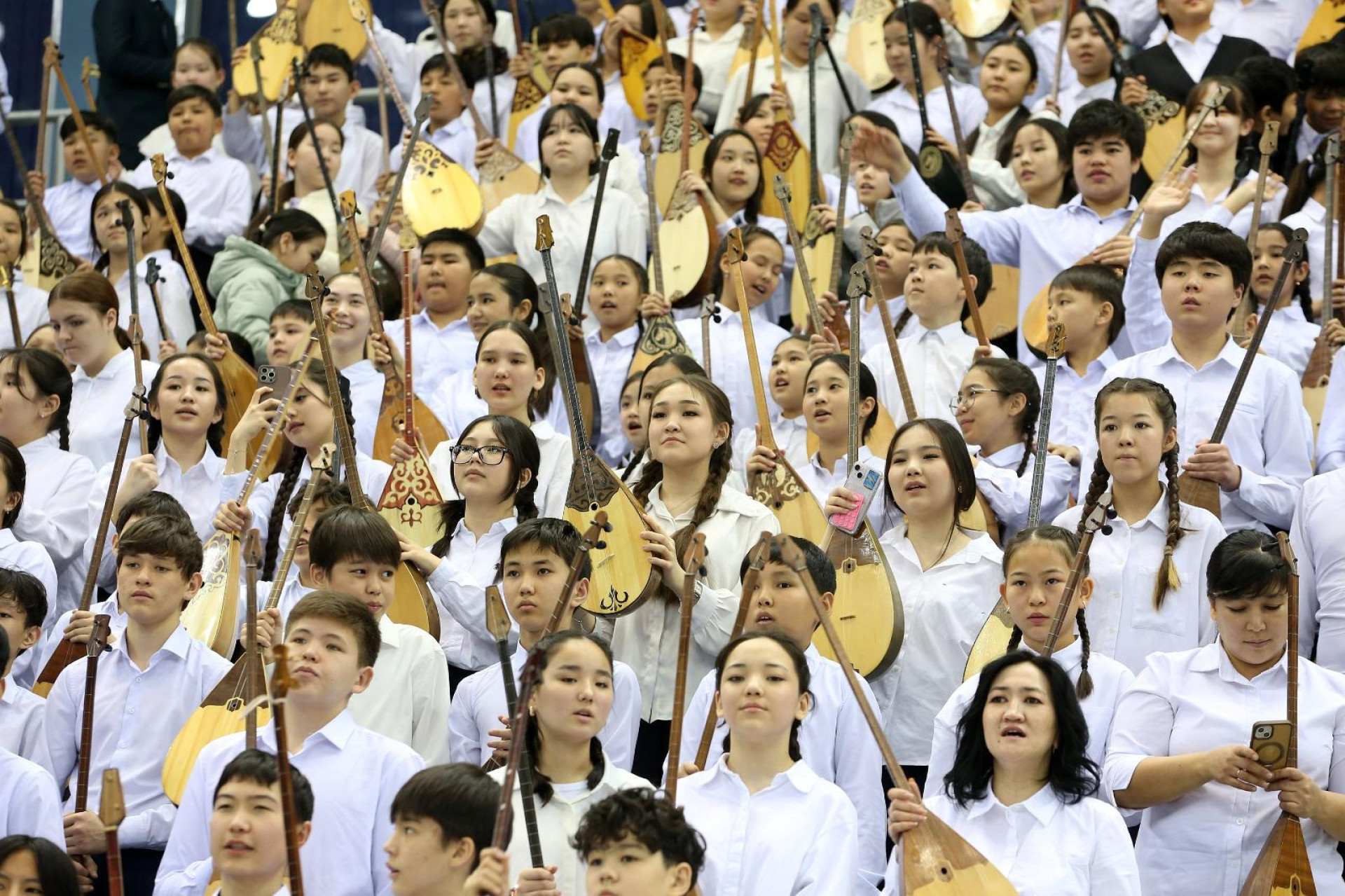 Школьники, объединившись в один оркестр, одновременно исполнили специально подготовленное музыкальное попурри. Тысячи голосов домбры зазвучали в унисон, символизируя единство нового поколения Казахстана, подчеркнули городские власти.