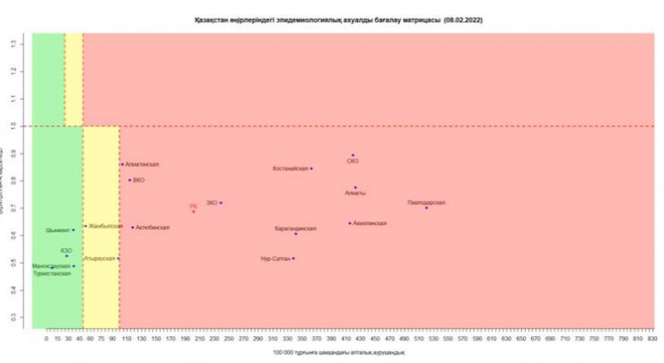 Согласно данным Минздрава, на 8 февраля ситуация в регионах Казахстана выглядит следующим образом: