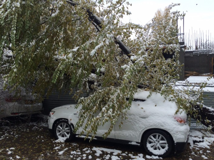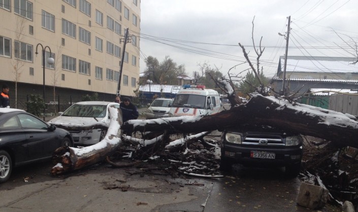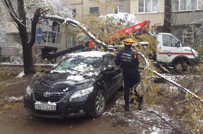 12 легковых автомобилей пострадали от падения деревьев после снегопада в Алматы, передает корреспондент Tengrinews.kz со ссылкой на пресс-службу "Службы спасения города".