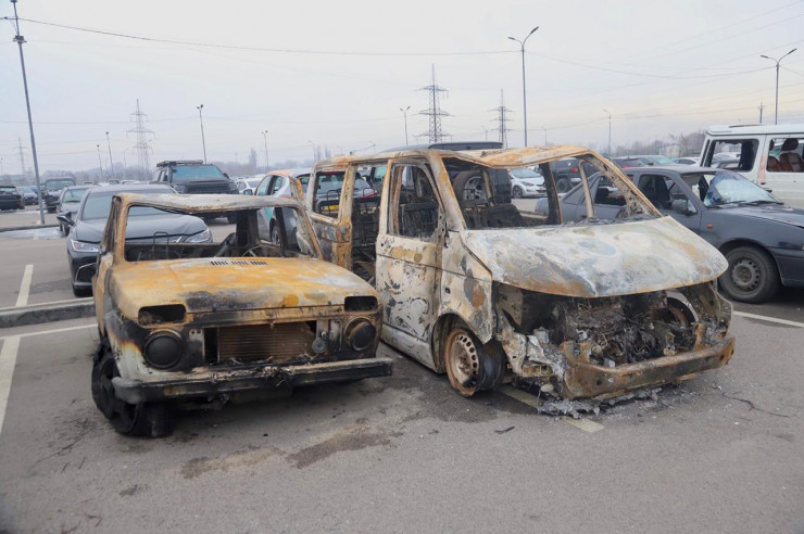 По данным начальника Службы спасения города Алматы Бейсегали Жунусова, сожжено 47 машин, обстреляно 48, еще 17 подверглись разбойным нападениям. Еще 40 авто принадлежат органам правопорядка, в том числе автозаки и грузовики.