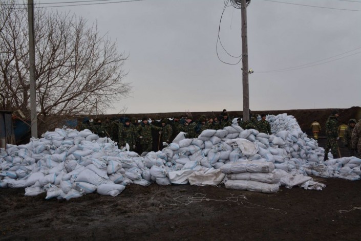 Как сообщается, силами и средствами Департамента по чрезвычайным ситуациям Акмолинской области, местных исполнительных органов, местной полицейской службы, Национальной гвардии, а также при задействовании курсантов Кокшетауского технического института проводятся работы по восстановлению участка дамбы, разрушенного водой вчера, 15 апреля 2017 года, в 20.00.
