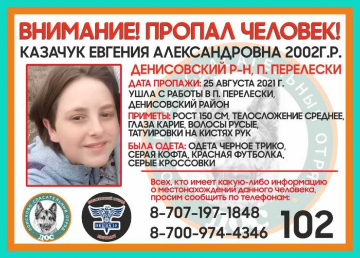 В Костанайской области пропала без вести Евгения Казачук 2002 года рождения. Информацию о розыске распространяют волонтеры оперативно-спасательного отряда "Дос", передает Tengrinews.kz со ссылкой на Qostanay.TV и "Алау".