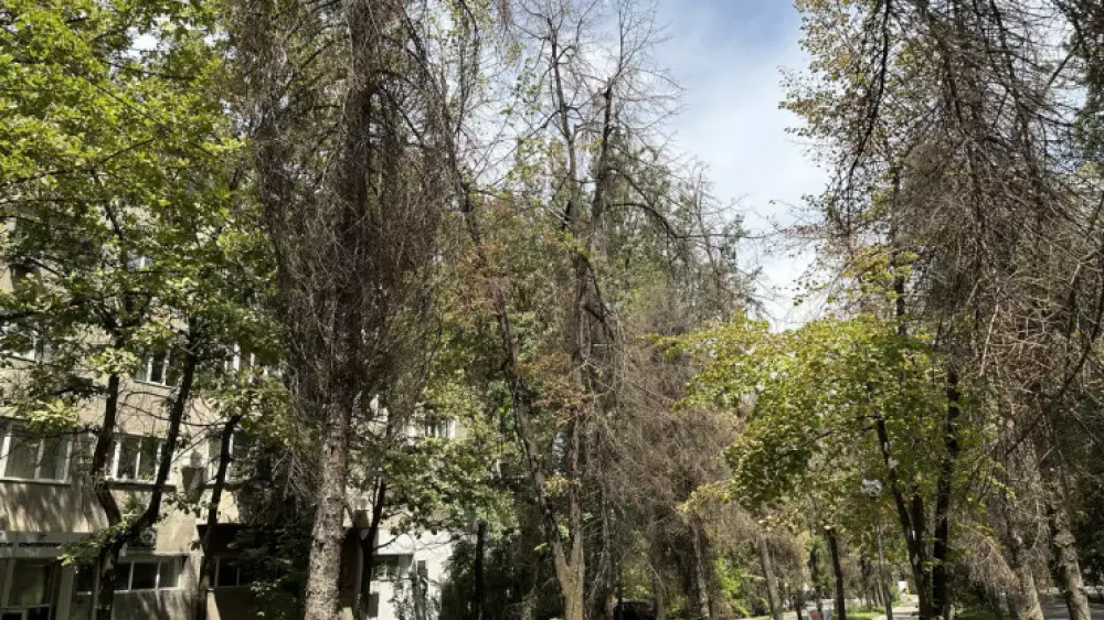 Абаттандыруға миллиардтаған қаржы бөлінсе де, Алматыдағы ағаштар суарылмай келеді. Мәселен Төлебаев көшесіндегі ағаштар күз келмей жатып сарғайып, кейбіреуі басынан аяғына дейін қурап кеткен. Massaget.kz тілшісі оқиға орнына барып қураған теректерді көзбен көріп қайтты.