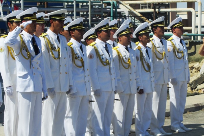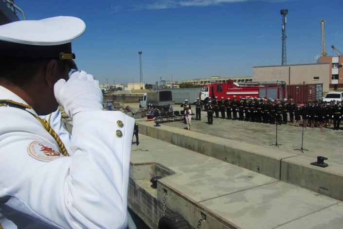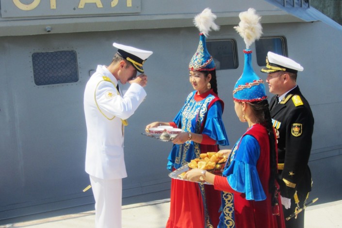 В морпорту Актау торжественно встретили экипажи ракетных артиллерийских кораблей "Сарыарка" и "Орал", занявших в Махачкале второе место в соревнованиях по морскому биатлону в рамках Армейских международных игр.