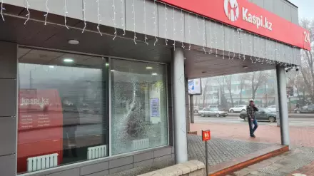 Пострадавшие отделения в Kaspi.kz временно закрыли фанерой.