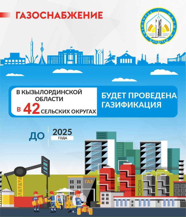 В Кызылординской области активно ведутся работы по газификации. К газу подключены города Кызылорда, Аральск, Байконур и 17 сельских населенных пунктов.