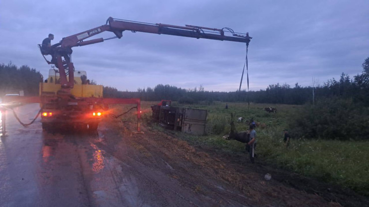Поясняется, что в фуре находились 23 коровы, мужчина вез их из Северо-Казахстанской области на один из мясокомбинатов в поселке Заречное.