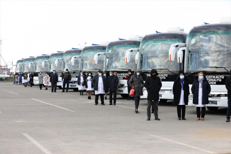 Сегодня заместитель премьер-министра Ералы Тугжанов и министр здравоохранения Алексей Цой, министр индустрии и инфраструктурного развития Бейбут Атамкулов приняли участие во вручении 24 передвижных медицинских комплексов районным больницам.