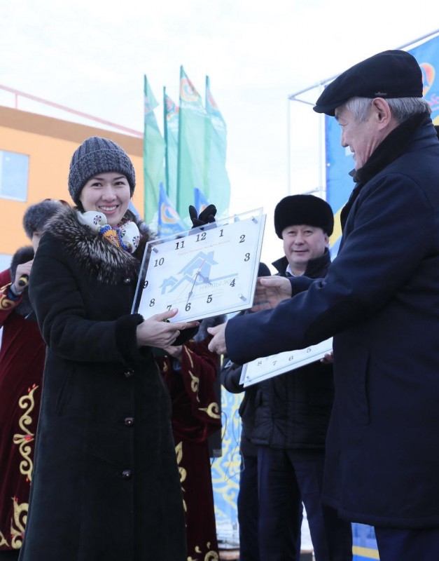 Аким Актюбинской области Бердыбек Сапарбаев 1 декабря вручил первым новоселам ключи от квартир, построенных в Актобе в рамках государственной программы "Нұрлы жер".