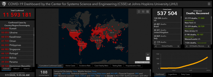По данным Университета Джонса Хопкинса, Казахстан поднялся на две строчки в антирейтинге стран по количеству заболевших и занял 35-е место с 49 683 случаями заражения COVID-19. На первых строчках - США, Бразилия, Индия и Россия.