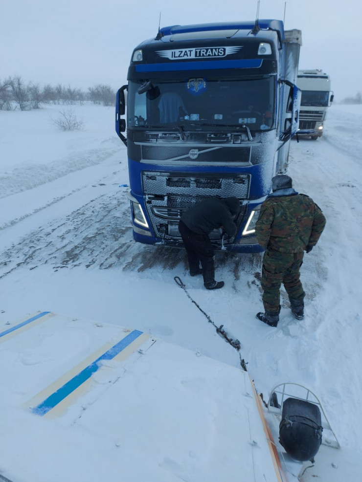В Западно-Казахстанской области из-за неблагоприятных погодных условий создался затор из большегрузных автомобилей на трассе Самара - Шымкент. На место выехали сотрудники Департамента по чрезвычайным ситуациям, передает корреспондент Tengrinews.kz.
