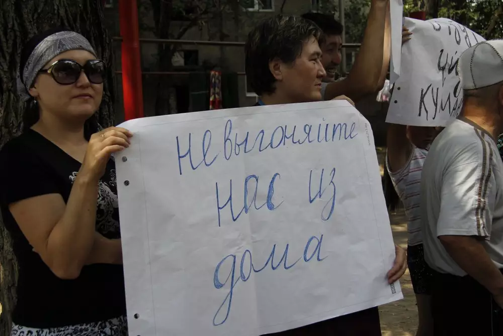 В связи с этим он попросил жильцов съехать, когда они отказались - подал на них в суд. В марте суд вынес решение в пользу жильцов. Домовладелец дал семьям время на то, чтобы освободить общежитие, до 20 июля. В противном случае он планирует вновь обратиться в суд. Недовольные жильцы вышли на улицу с плакатами. Отметим, что изначально в доме жили 82 семьи, с начала 2013 года в доме остались 35 семей. Сейчас в доме остались около пяти семей, которые выступили инициаторами протеста против выселения.