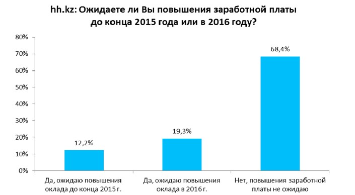 Отвечая на вопросы по поводу дальнейших прогнозов по зарплате, 12,2 процента респондентов отметили, что ожидают повышения заработной платы до конца года, еще 19,3 процента ожидают повышения в 2016 году, остальные 68,4 процента опрошенных отметили, что повышения оклада не ждут совсем.