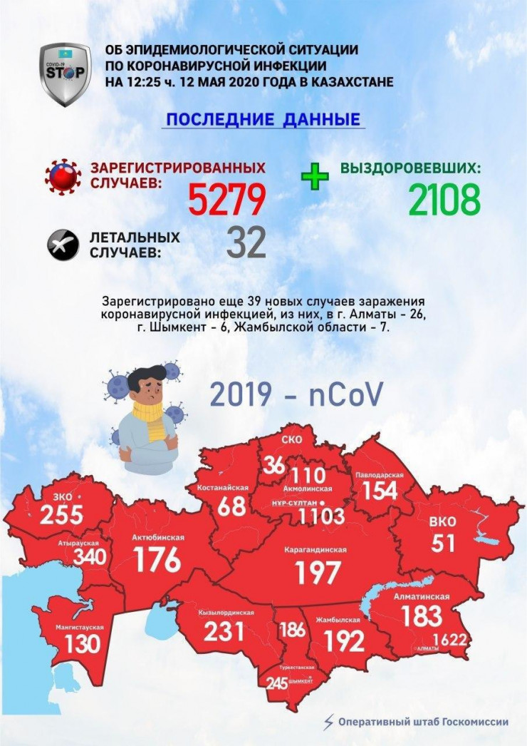 При этом от коронавируса в Казахстане излечились 2108 человек, а умерли 32.