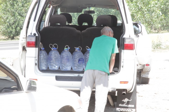 Тұрғындар көбінде флягамен, 5-6 литр құтылармен су алуға келеді.