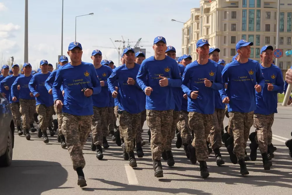5-километровым забегом отметили 7 мая казахстанские военнослужащие, передает корреспондент Tengrinews.kz.