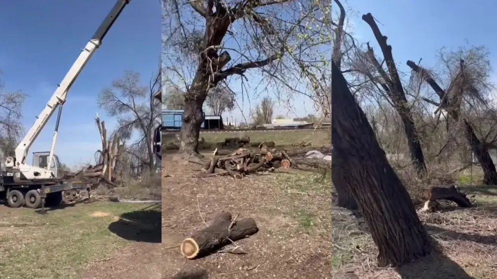 "Вырубка проводится под предлогом "безопасности", но очевидно, что деревья вывозят для переработки на материалы. Вывозят машины с другими номерами регионов, например из Кызылорды", - сказал он.