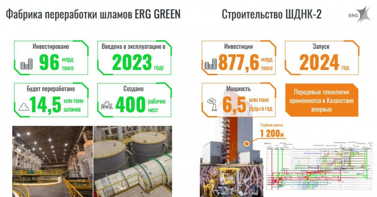 У ERG есть несколько уникальных проектов в Хромтау, о которых также рассказал Шахажанов. В мае этого года в городе заработала фабрика по переработке шламов ERG Green. Ее особенность в том, что она является одной из самых современных по технологичности и автоматизации в мире. На предприятии будет переработано 14,5 миллиона тонн шламов и рекультивированы 12 хвостохранилищ.