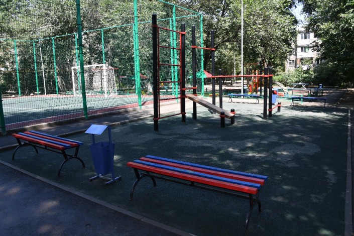 В рамках строительства новых дворовых территорий устанавливаются детские и спортивные площадки, тренажеры и игровые комплексы. Производится обустройство асфальтового и резинового покрытий, установка скамеек и урн, новых опор освещения и другое.