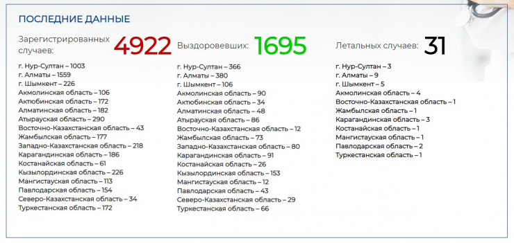 Итого выздоровевших в Казахстане - 1695: