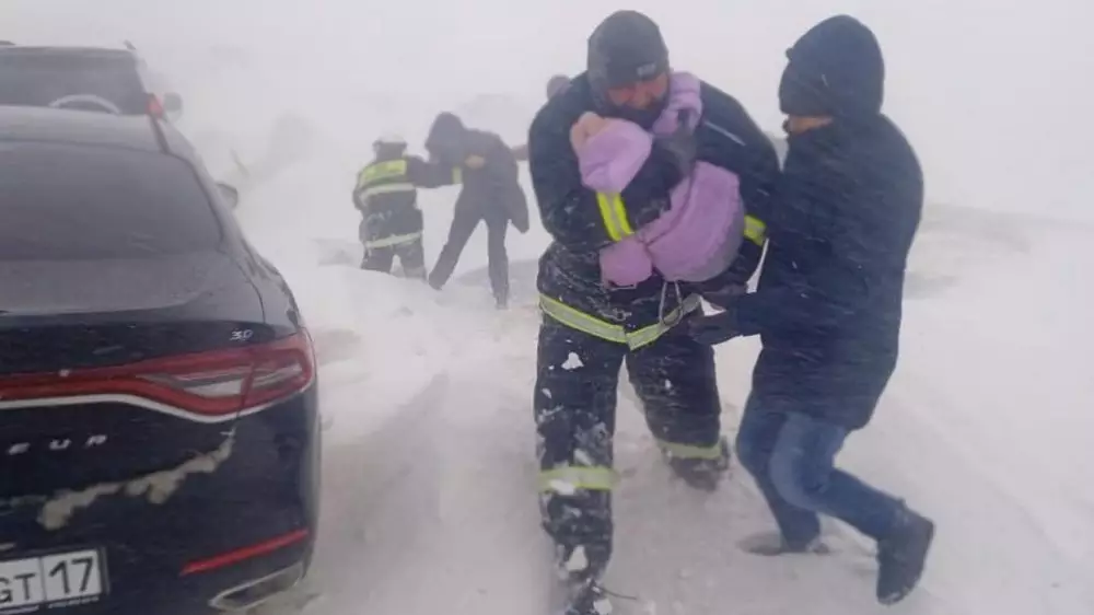 60 машин из-за непогоды застряли на дорогах в Сарысуском районе Жамбылской области, передает Tengrinews.kz.