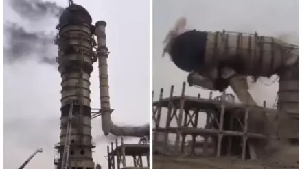 В производственной зоне города Актау в результате пожара рухнула 63-метровая башня, в которой хранились нефтехимические отходы. Видео случившегося опубликовали местные паблики, передает Tengrinews.kz.