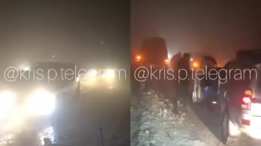 "Массовое ДТП по бетонке Алматы - Капшагай, очевидцы отправляют видео с места. Туман и гололед, будьте осторожны. Очевидцы сообщают, что это, возможно, дым", - подписана публикация.