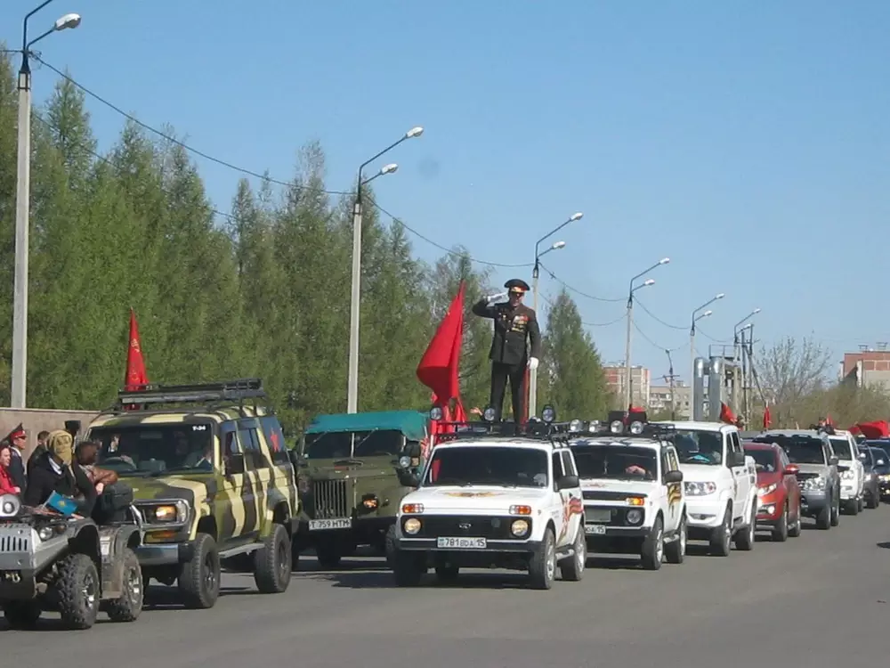 В автопробеге "Победа деда- Моя победа", прошедшим в День Победы в Петропавловске, приняли участие более 70 автомобилистов. Разнообразные машины растянулась по центральным улицам города более чем на 10 километров.