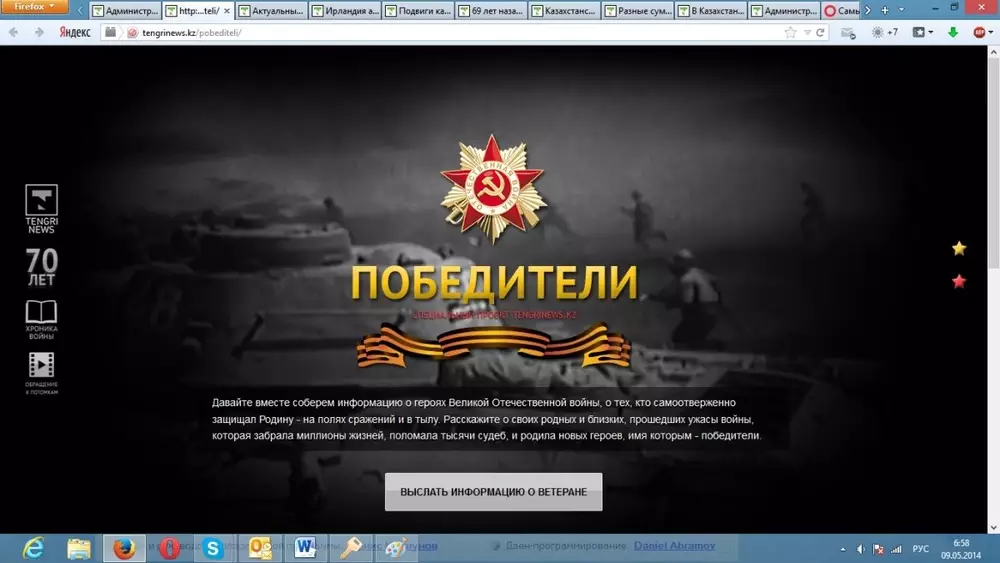 К 70-летию победы в Великой Отечественной войне Tengrinews.kz начинает проект "Победители", в котором может поучаствовать каждый казахстанец.