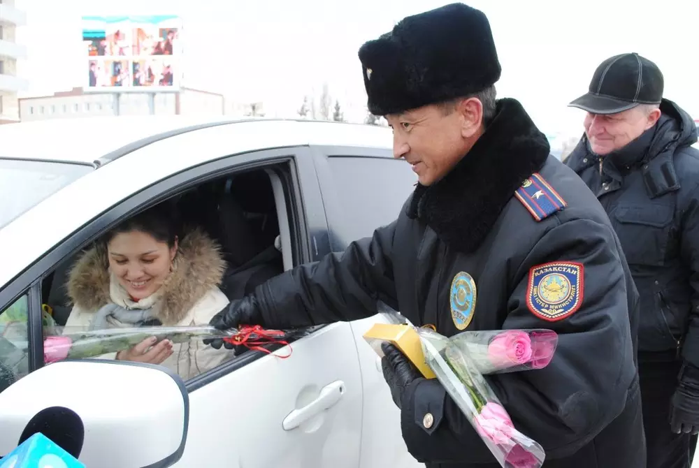 Дорожные полицейские всего Казахстана 8 Марта будут дарить женщинам за рулем цветы и в некоторых городах прощать им нарушения ПДД и пропускать вне очереди в УДП, сообщает корреспондент Tengrinews.kz.